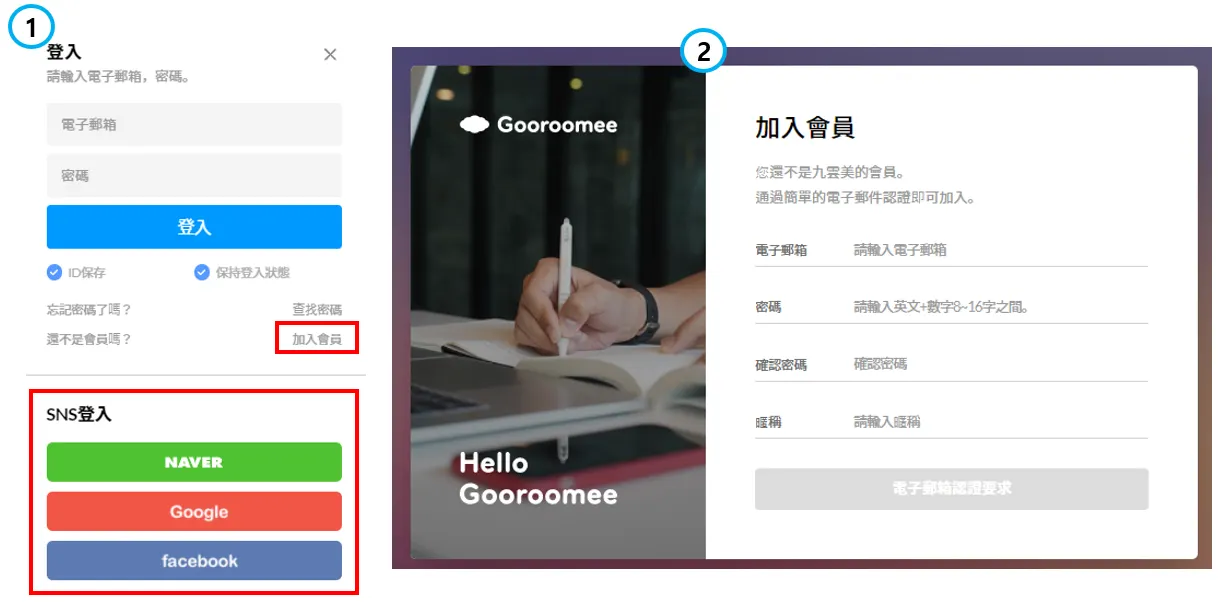 註冊會員有兩種方式,點擊右上角的登錄後,