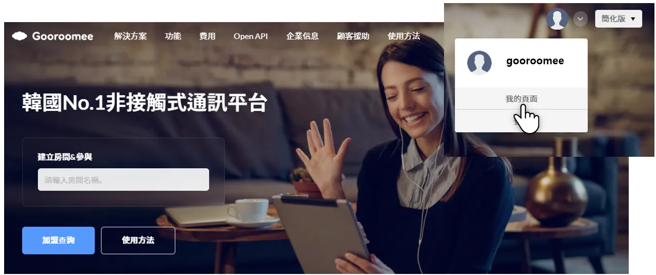 點擊畫面右上角的人模樣旁邊的箭頭,就會顯示我的頁面。