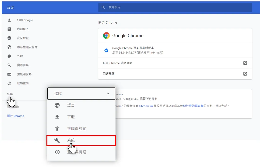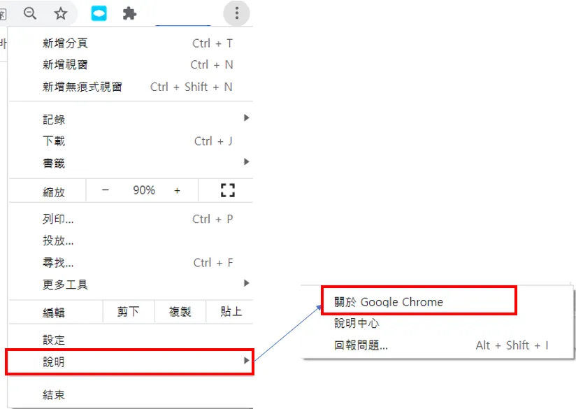 打開Chrome,點擊右上角三個點-說明-請點擊“關於 Google Chrome”。