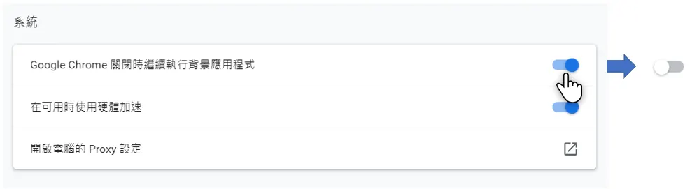 關閉“即使在Chrome關閉後繼續運行後台應用程序”,