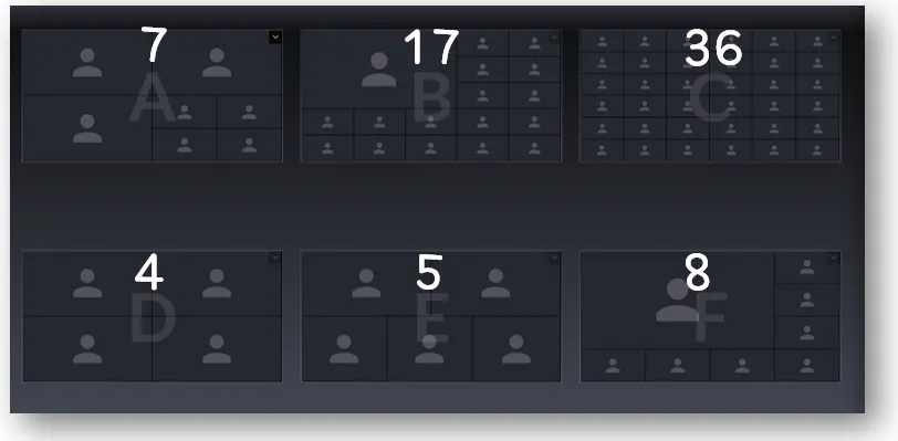 如果進入的人數超過了設置的佈局,則會有未顯示在屏幕上的參與者。請將其更改為與人數匹配的佈局。
