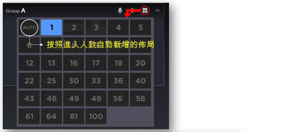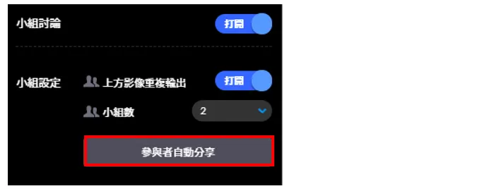 必須將小組討論設定為“打開”後,點擊房間設定確認按鈕後使用,點擊按鈕才能啟動該按鈕。