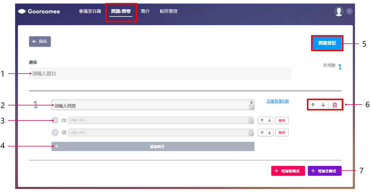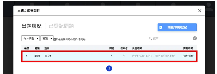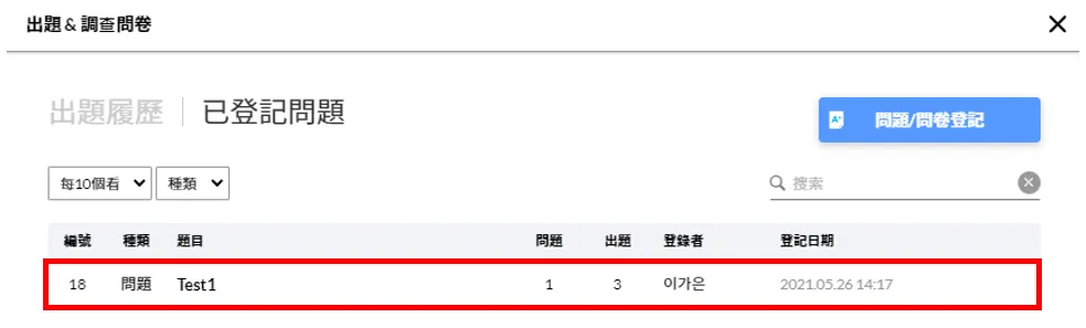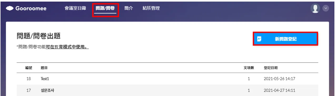 1. [問題/問卷]檢查和出題可以登記新的問題。