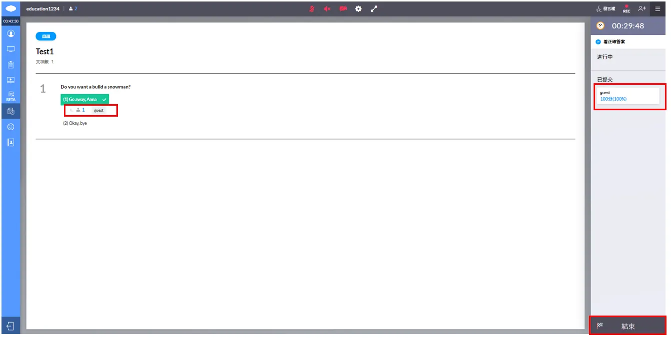 當問卷/測驗開始時,老師可以實時檢查學生的答案。
