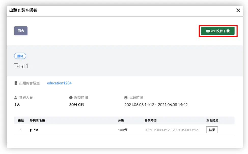 出題履歷 : 可以在參加考試後查看完成問題/問卷的經驗並查看結果。