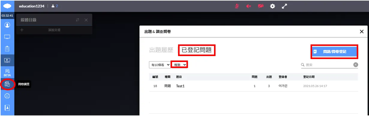 已登記問題 : 可以確認其他會議室登記的問題/問卷。