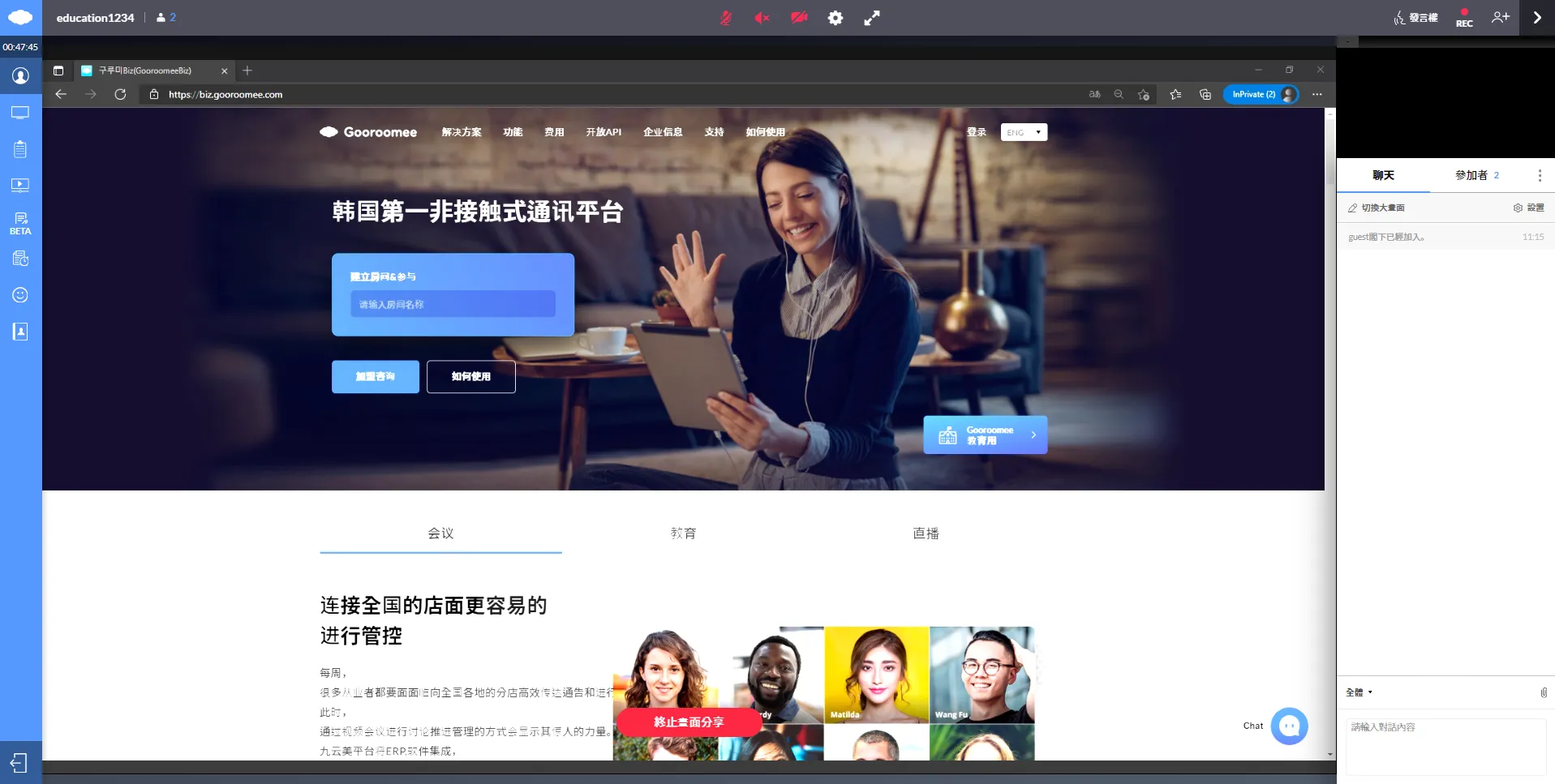 參加者和學生可以在大屏幕上看到正在共享的屏幕。