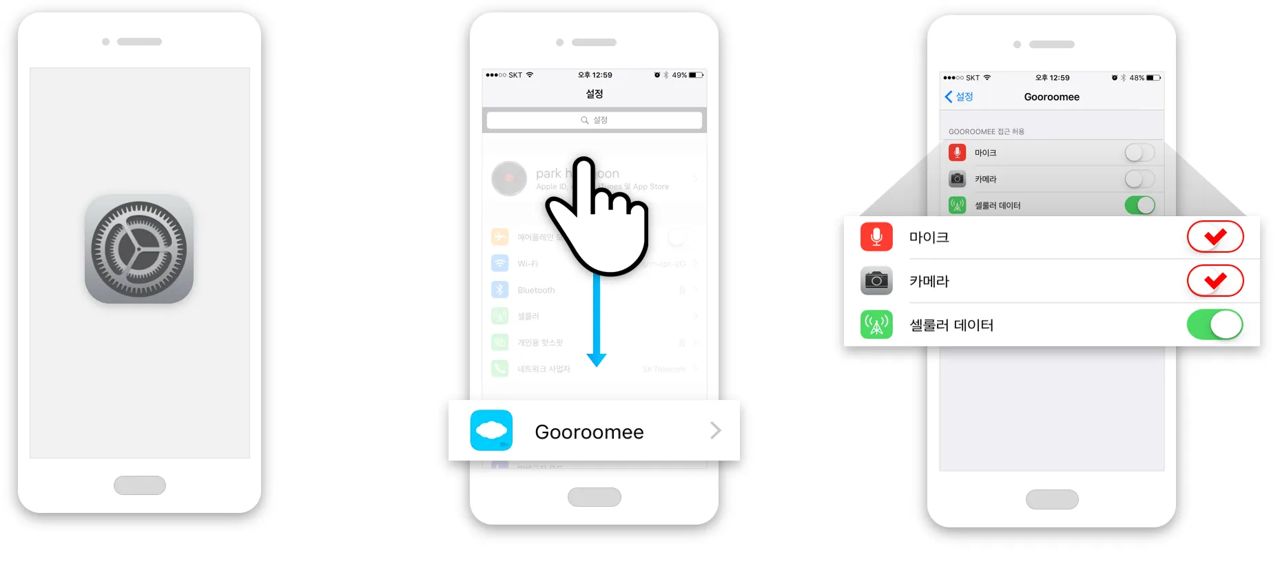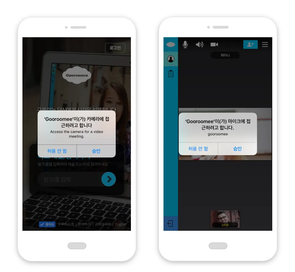 請點擊手機設定->向下滾動並選擇 Gooroomeebiz 應用程序->請將麥克風和相機切換到啟動狀態。
