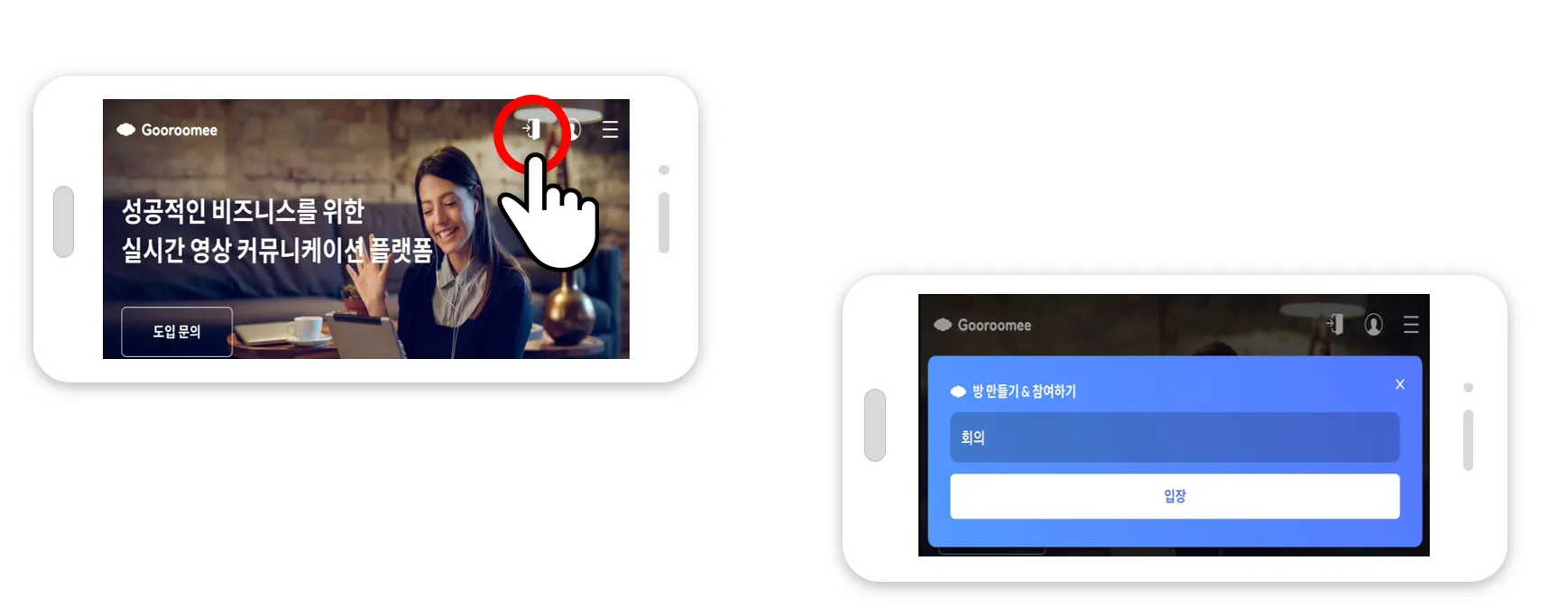 點擊屏幕右上角的進入圖標/輸入您要進入的“房間名稱”,並請按進入鍵。