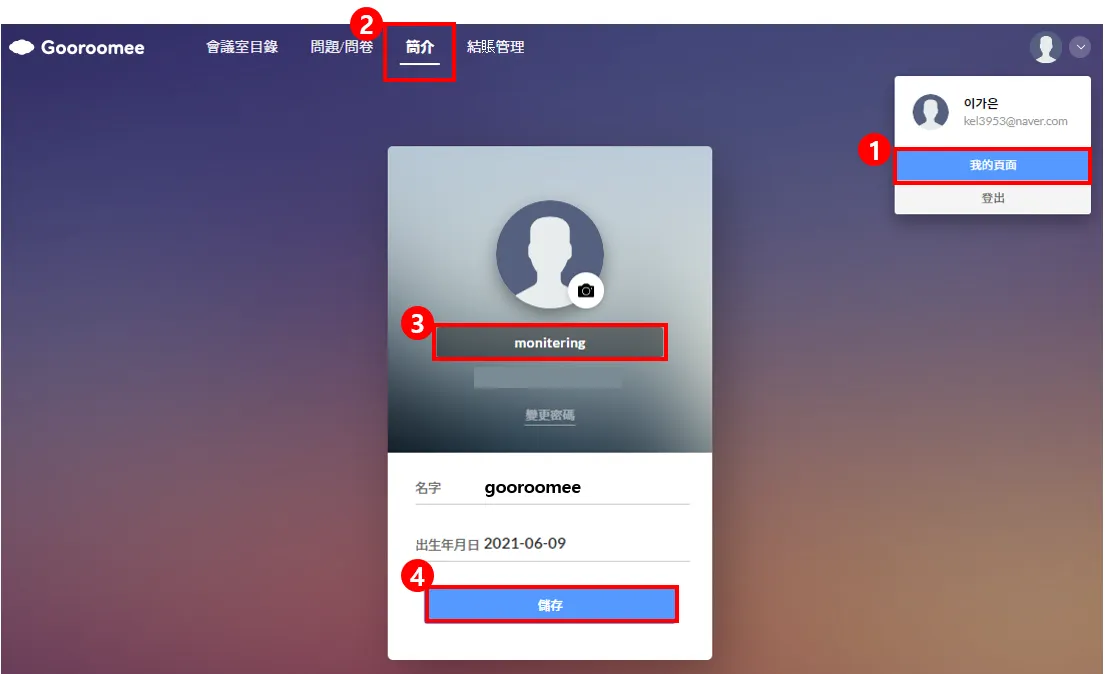 個人資料更改:在我的頁面&會議室中更改暱稱