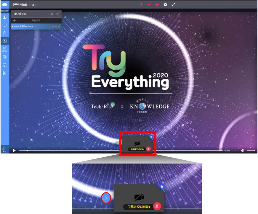 共享媒體時,下端小屏幕上顯示的用戶標準根據接收語音的用戶數(打開麥克風並發出聲音的用戶數)顯示在屏幕上。