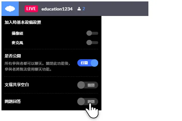 問題問答功能是在直播模式下,當參與者或學生向發表者或老師提問時,發表者或老師可以確認的功能。