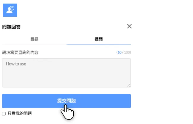 參加者/學生在左側選單上點擊問答選單後,登入提問問題即可。
