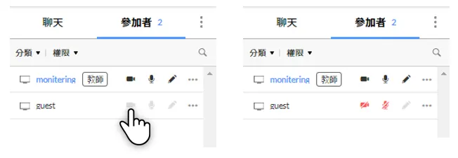 要求會議室中具有權限的人員(教師、助教、發表者、主持人)將顏色從灰色更改為黑色或紅色。